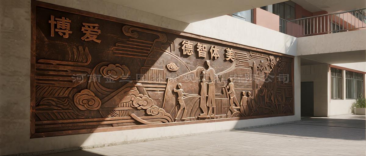 作为国内校园浮雕领域的源头厂家,金兰园林景观拥有 3000 余平方米标准化制作车间与 300 余平方米精品展厅,从设计构思到成品交付实现全链条自主把控。16 年来,其已完成数千所学校的浮雕定制项目,形成了一套成熟的 “教育需求解读 — 文化主题提炼 — 艺术形式转化 — 工程落地执行” 服务体系。