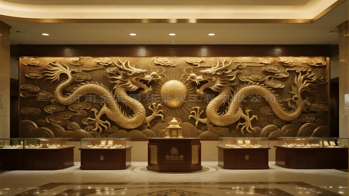 金楼作为承载黄金文化与财富象征的场所,其装饰浮雕需兼顾艺术性与寓意性。龙、凤、祥云等中国传统纹饰因具有吉祥富贵的象征意义,成为金楼浮雕的主流题材。这类纹样不仅视觉效果华丽庄重,更能与黄金产品形成文化呼应,强化空间叙事。此外,如宝相花、缠枝纹、如意纹等富丽纹饰,也常见于高端金楼装饰中,进一步提升环境的文化厚度与品牌格调。