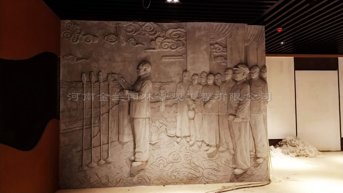 作为长子县党建展厅的重点建设项目,该浮雕的落地离不开金兰园林景观与总承包单位的紧密协作。从设计方案的政治严谨性审查到施工过程中的安全把控,双方建立了高效的沟通机制,左总带领团队多次深入现场,协调展厅空间布局与浮雕安装细节,确保艺术效果与功能需求的完美统一。这种基于专业信任的合作模式,不仅保障了项目按期高质量完成,更成为新时代政企携手传承红色文化的典范。