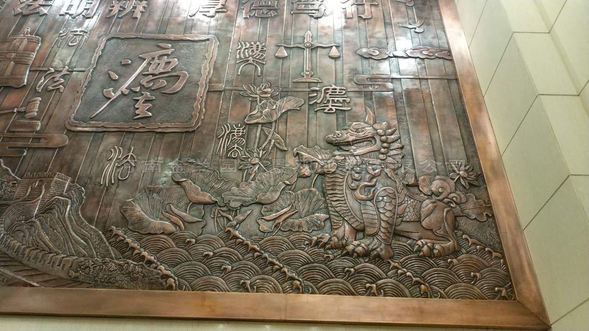 江苏省泰州市海陵区人民法院迎来了一件意义非凡的文化艺术作品——由金兰园林景观工程有限公司设计制作的大厅铜雕文化墙正式落成。这座长5.53米、高3.85米的铜雕文化墙,以其精湛的工艺和深厚的法治文化内涵,成为法院大楼内一道庄重而典雅的风景线,也标志着金兰园林景观在公检法系统文化建设领域的又一重要突破。