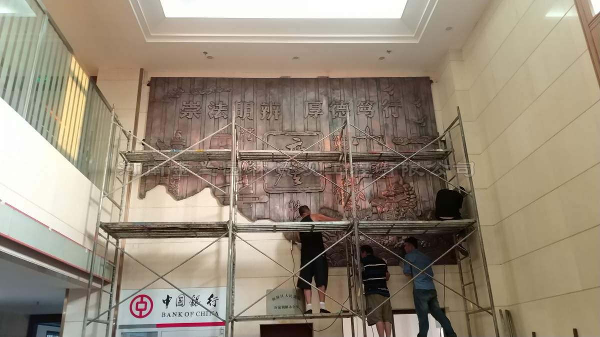 在浮雕安装过程中,海陵区法院相关领导全程参与指导,为项目的顺利推进提供了有力支持。竣工后,法院领导高度评价:“选择金兰园林是正确的决定,工艺精湛,整体效果远超预期!”这一评价不仅是对金兰团队专业能力的肯定,也印证了其在公检法系统文化建设领域的品牌影响力。