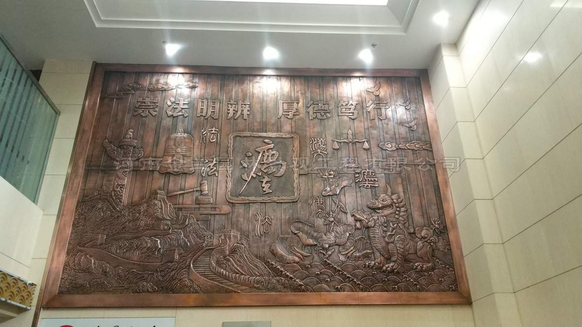江苏省泰州市海陵区人民法院迎来了一件意义非凡的文化艺术作品——由金兰园林景观工程有限公司设计制作的大厅铜雕文化墙正式落成。这座长5.53米、高3.85米的铜雕文化墙,以其精湛的工艺和深厚的法治文化内涵,成为法院大楼内一道庄重而典雅的风景线,也标志着金兰园林景观在公检法系统文化建设领域的又一重要突破。
